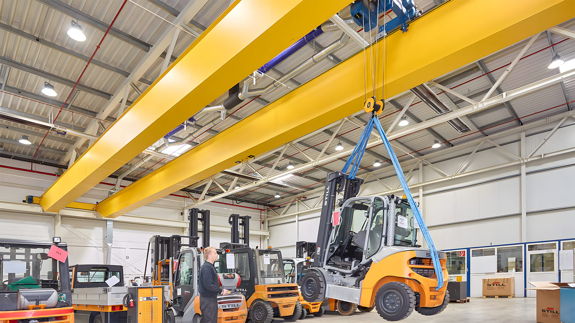 QD型通用橋式起重機(jī),由箱型橋架、大車運(yùn)行機(jī)構(gòu)、小車、電氣設(shè)備等部分構(gòu)成;本產(chǎn)品具有適應(yīng)多種場地的工作特點(diǎn);另外,該機(jī)全部機(jī)構(gòu)均在操作室內(nèi)操縱,且操縱室內(nèi)視野開闊;露天使用時(shí),需增加防雨設(shè)備。根據(jù)用戶要求可以選用遙控或線控操作。